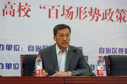 學(xué)院黨委副書記、紀委書記白托婭主持報告會。她指出,孫書記用生動地講述使我們對黨的歷史、黨的奮斗目標、中國建設(shè)發(fā)展的現(xiàn)狀有了深入理解,堅定了對以習(xí)近平同志為核心的黨中央集中統(tǒng)一領(lǐng)導(dǎo)的信心與信念。特別是孫書記通過幾個引人深思的哲理故事,教育引導(dǎo)青年學(xué)生如何把握機遇,成長為擔(dān)當民族復(fù)興大任的時代新人。希望同學(xué)們在聆聽報告之后,深入思考,進一步領(lǐng)會報告的深刻思想,特別是對我們青年人提出的一些具體要求,思考我們從現(xiàn)在開始要怎么做。尤其在座的都是學(xué)生骨干,大家身上的責(zé)任與擔(dān)當更重,要在同學(xué)中發(fā)揮示范表率作用,結(jié)合自身實際,心懷理想,做好當下,抓住機遇,鍛煉自己,學(xué)好專業(yè)知識,做品德高尚有理想的人,做合格的社會主義接班人和建設(shè)者。