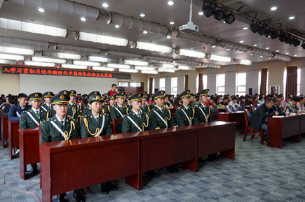 學(xué)院黨群工作部、學(xué)工處(團委)全體人員,各系黨總支書記、學(xué)工辦主任,院學(xué)生會全體成員、各系學(xué)生會主要干部,國旗班、軍樂團、青年馬克思讀書會、學(xué)生記者團學(xué)生代表等近400人現(xiàn)場聆聽了報告。