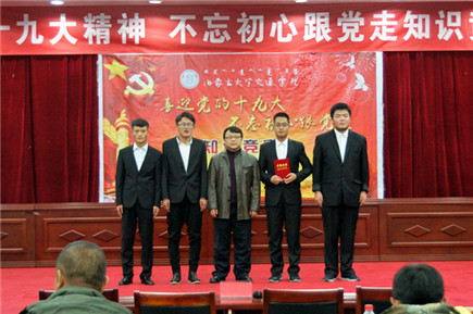 郭鵬飛代表黨群工作部和學生工作處(團委)總結點評本次活動。他首先祝賀本次競賽活動取得圓滿成功,祝賀所有參賽選手在活動中得到巨大的知識和精神上的收獲。他指出,在我院持續(xù)掀起學習貫徹宣傳黨的十九大精神熱潮時,主題知識競賽活動無疑起到了薪添旺火的作用,題庫設計量大面廣點全,準備工作非常充分,競賽選手的臨場表現(xiàn)和發(fā)揮集中體現(xiàn)了我院學生朝氣蓬勃的青春力量和堅定執(zhí)著地共產(chǎn)主義理想信念。他強調(diào),青年學生是祖國和民族未來的希望,一定要懷著“不忘初心跟黨走、青春建功新時代”的執(zhí)著信念,把個人的理想追求融入國家和民族的事業(yè)中,從自身成長和社會發(fā)展進步兩個角度全面把握培育和踐行新時代青年的內(nèi)在要求。學院會為青年大學生對習近平新時代中國特色社會主義思想的學習貫徹宣傳創(chuàng)造更多有利條件,學院已經(jīng)在學生中成立了青年馬克思讀書會,還將成立學習習近平新時代中國特色社會主義思想學生研究會和十九大精神學生宣講團。他號召全院學生要把握歷史機遇,肩負偉大的歷史責任,用自己的實際行動將個人夢和中國夢相結合,腳踏實地,奮力前行,為實現(xiàn)中華民族偉大復興中國夢而不斷努力。