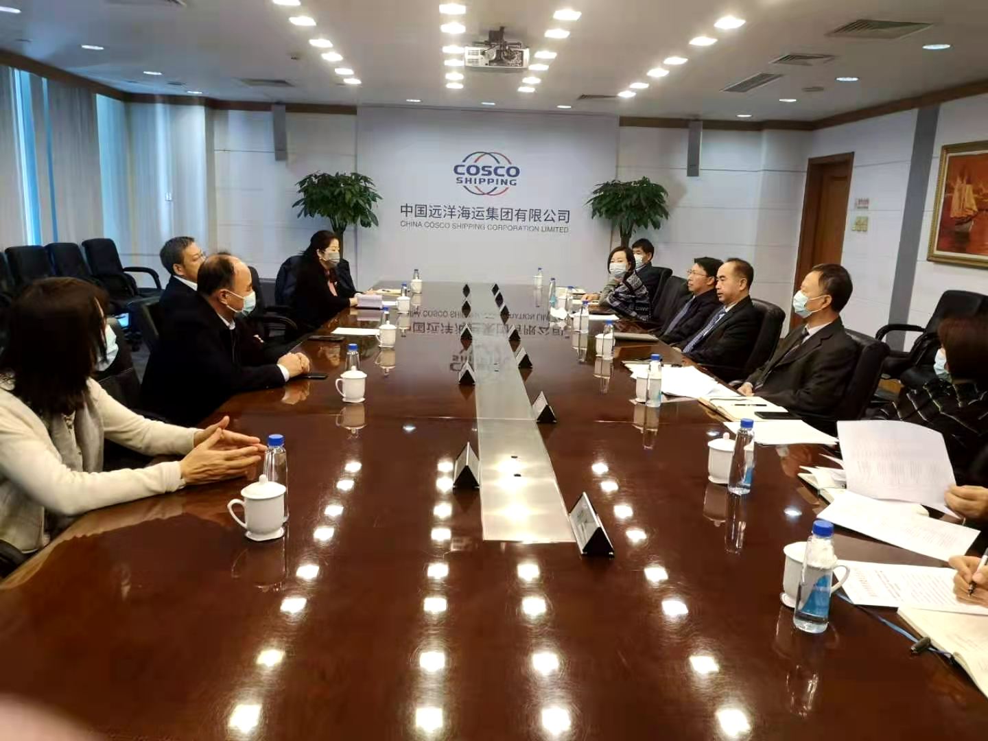 武鈞副院長、劉林平副處長、任建偉副主任就開展科研合作與中遠(yuǎn)集團(tuán)技術(shù)中心相關(guān)人員進(jìn)行了交流。