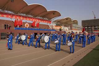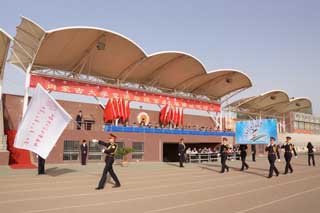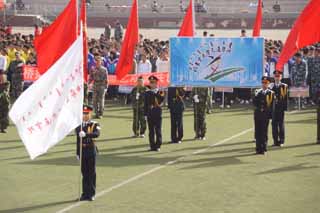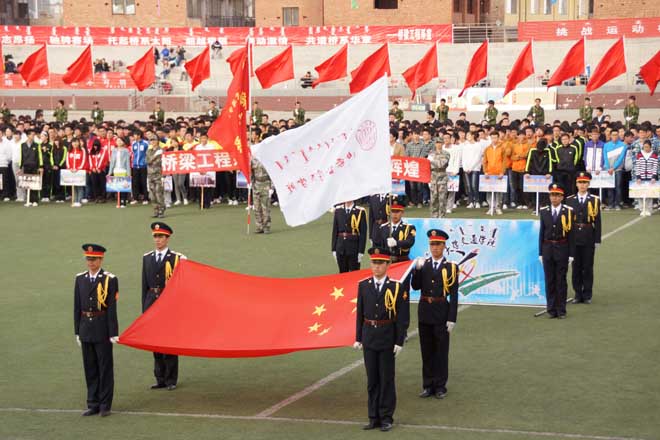 開幕式上學(xué)院國旗護衛(wèi)隊,以及裁判員、各班級和教職工方隊邁著整齊的步伐,喊著響亮的口號接受檢閱,方陣隊員昂揚的精神狀態(tài)充分的展示了內(nèi)蒙古大學(xué)交通學(xué)院師生的風(fēng)采。