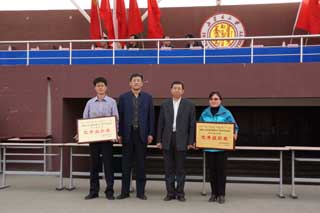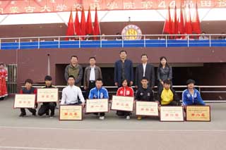 本屆運動會組委會相關(guān)負責(zé)人宣布了學(xué)生、教工代表隊比賽成績,和優(yōu)秀組織獎、精神文明先進班級體,并進行頒獎。