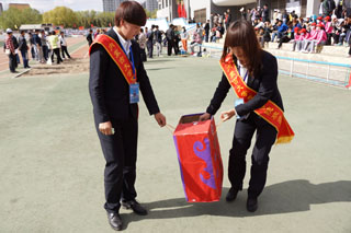 學(xué)院黨委副書記、紀(jì)委書記白托婭(左)在運(yùn)動會場 |
