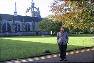 穆懷旗在阿伯丁大學最古老的教學樓旁留影 |