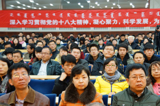 為了深入學習貫徹黨的十八大精神,把我校廣大師生員工思想和行動統(tǒng)一到黨的十八大精神上來,把力量凝聚到實現黨的十八大確定的各項任務上來,努力辦好人民滿意的教育,推動學??茖W發(fā)展,學校于2012年11月20日下午3:00在學術會議中心9號會議室召開全校傳達貫徹黨的十八大精神干部大會。