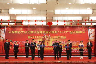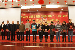 12月27日下午,學院在交通樓多功能廳舉辦2013年新年聯(lián)誼會暨工會表彰大會。我院黨委書記孫智憑,院長柴金義,常務副院長董平,副院長孫恒,副院長武鈞,黨委委員、科研處處長李宏,黨委委員、教務處處長趙志蒙出席表彰大會并為獲獎單位和個人頒獎。黨委副書記、紀委書記白托婭主持會議。全院200余名教職工參加了聯(lián)誼會。