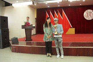 白托婭書記和馮俊杰老師為在制作心理健康宣傳展板和“和諧校園,健康心靈”征文中獲獎的單位和個人頒獎。