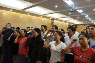 預(yù)備黨員進(jìn)行入黨宣誓,老黨員重溫入黨誓詞 | |