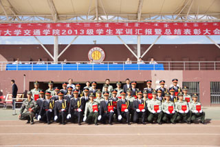 2013年9月5日,為期12天的內(nèi)蒙古大學(xué)交通學(xué)院2013級(jí)新生軍訓(xùn)圓滿(mǎn)結(jié)束并在南校區(qū)操場(chǎng)舉辦新生軍訓(xùn)匯操暨表彰大會(huì)。中國(guó)人民解放軍駐內(nèi)蒙古大學(xué)后備軍官選培辦主任胡成,內(nèi)蒙古大學(xué)學(xué)工處副處長(zhǎng)(團(tuán)委副書(shū)記)武裝部副部長(zhǎng)海光,學(xué)院常務(wù)副院長(zhǎng)董平,黨委副書(shū)記、紀(jì)委書(shū)記、軍訓(xùn)工作領(lǐng)導(dǎo)小組組長(zhǎng)白托婭,副院長(zhǎng)孫恒,副院長(zhǎng)武鈞和各系黨總支書(shū)記出席表彰大會(huì)并在主席臺(tái)就坐。學(xué)工處副處長(zhǎng)、團(tuán)委副書(shū)記高飛主持大會(huì)。