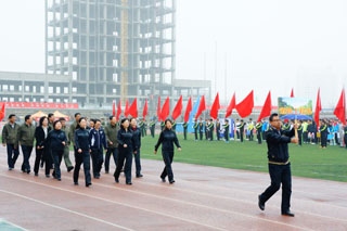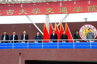 內(nèi)蒙古大學副校長鐵勇,內(nèi)蒙古大學黨委委員、交通學院黨委書記孫智憑,內(nèi)蒙古大學體育教學部主任于志海、黨政辦公室副主任方麗英、團委副書記海光、保衛(wèi)處副處長金山,中國人民解放軍陸軍預備役步兵第三十師參謀長謝志勇、通訊科科長孫英俊,交通學院常務副院長董平,副院長孫恒,副院長武鈞,各系黨總支書記出席開幕式并在主席臺就坐。我院師生2300余人參加了開幕式。開幕式由黨政辦公室主任胡利春主持。