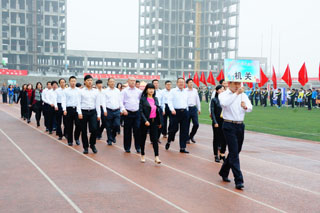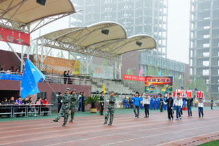 一場春夜喜雨之后,伴隨著清新的空氣,在雄壯高昂的運動員進行曲中,各系學生和教工方隊,機關(guān)、教輔單位職工方隊,步伐矯健,口號響亮,依次向主席臺走來,接受檢閱。隆重的入場式后,大會舉行了莊嚴的升國旗儀式,在嘹亮的國歌聲中,五星紅旗冉冉升起。