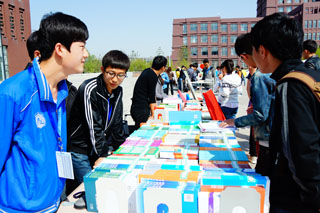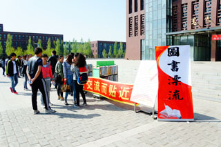 本次活動(dòng)持續(xù)2天在南校區(qū)圖書館樓前廣場(chǎng)舉行,主要內(nèi)容有:組織各大出版社書目參展,讓師生選出自己喜歡和需要的書籍,由圖書館訂購(gòu)所選圖書;現(xiàn)場(chǎng)師生在宣傳橫幅上簽名,弘揚(yáng)讀書文化;參加“淘書會(huì)友”活動(dòng),進(jìn)行圖書交換以提高圖書利用率等。
