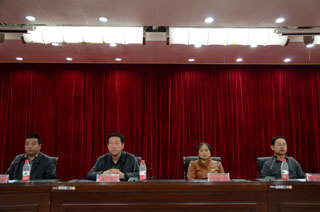 學(xué)工處學(xué)生管理科科長崔建軍(左一),學(xué)工處副處長、團(tuán)委副書記高飛(左二) ,學(xué)工處副處長馮俊杰(左三),學(xué)工處副處長、就業(yè)指導(dǎo)中心主任季秋成(左四) |