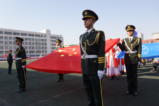 與會(huì)領(lǐng)導(dǎo)為獲得學(xué)生男子團(tuán)體前六名的單位頒獎(jiǎng) |