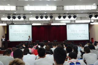 學(xué)工處副處長、就業(yè)指導(dǎo)中心主任季秋成主持講座 |