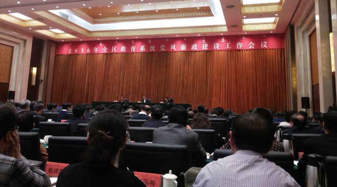 3月8日,自治區(qū)黨委高校工委、教育廳黨組在呼和浩特召開2016年全區(qū)教育系統(tǒng)黨風廉政建設(shè)工作會議,深入貫徹落實黨的十八屆五中全會、中央紀委六次全會,貫徹落實自治區(qū)黨委九屆十四次全會和自治區(qū)紀委九屆七次會議精神以及全國教育系統(tǒng)黨風廉政建設(shè)工作會議精神,總結(jié)2015年全區(qū)教育系統(tǒng)黨風廉政建設(shè)工作,安排部署2016年工作任務(wù)。