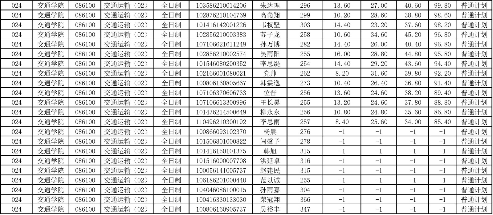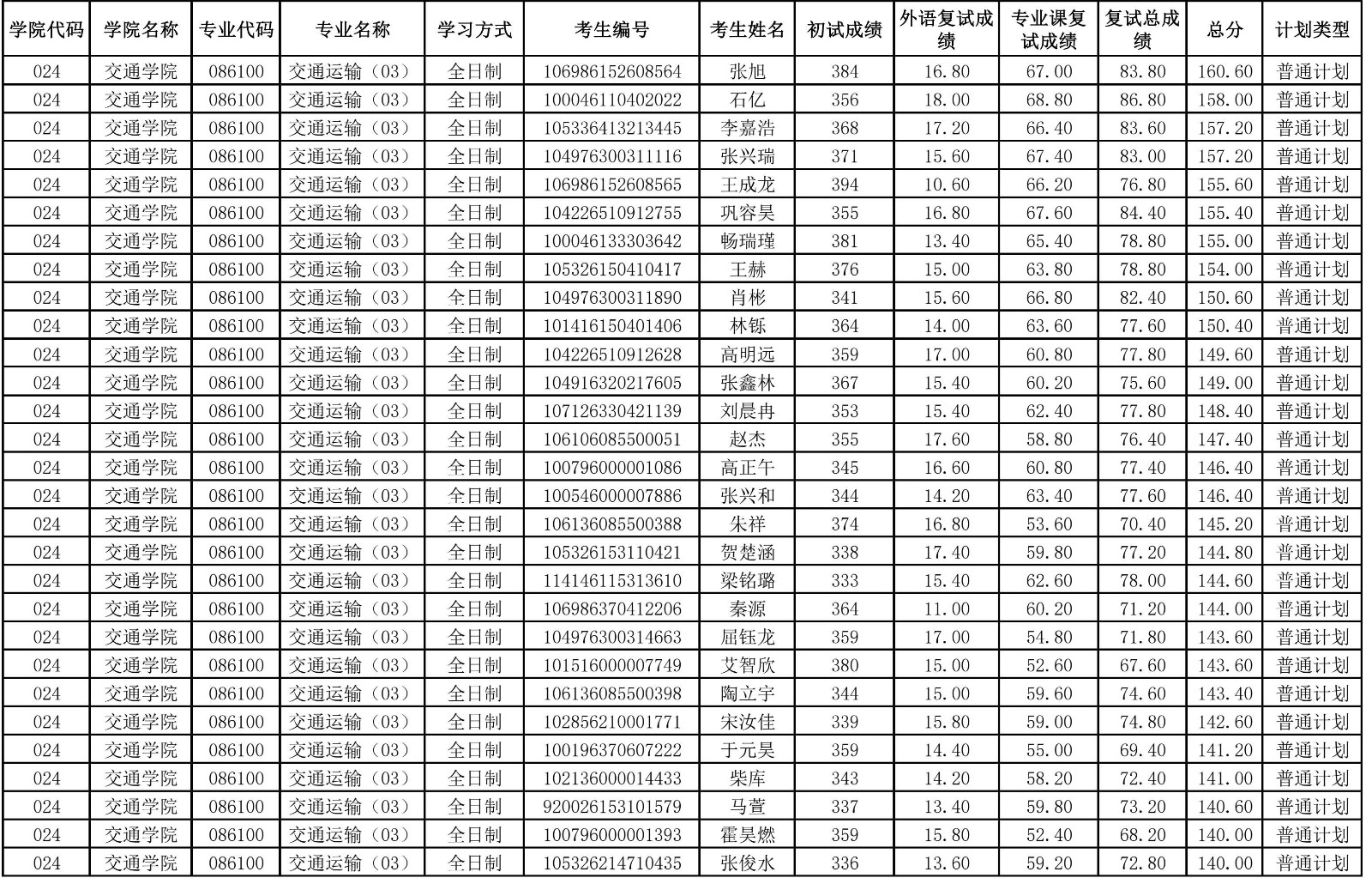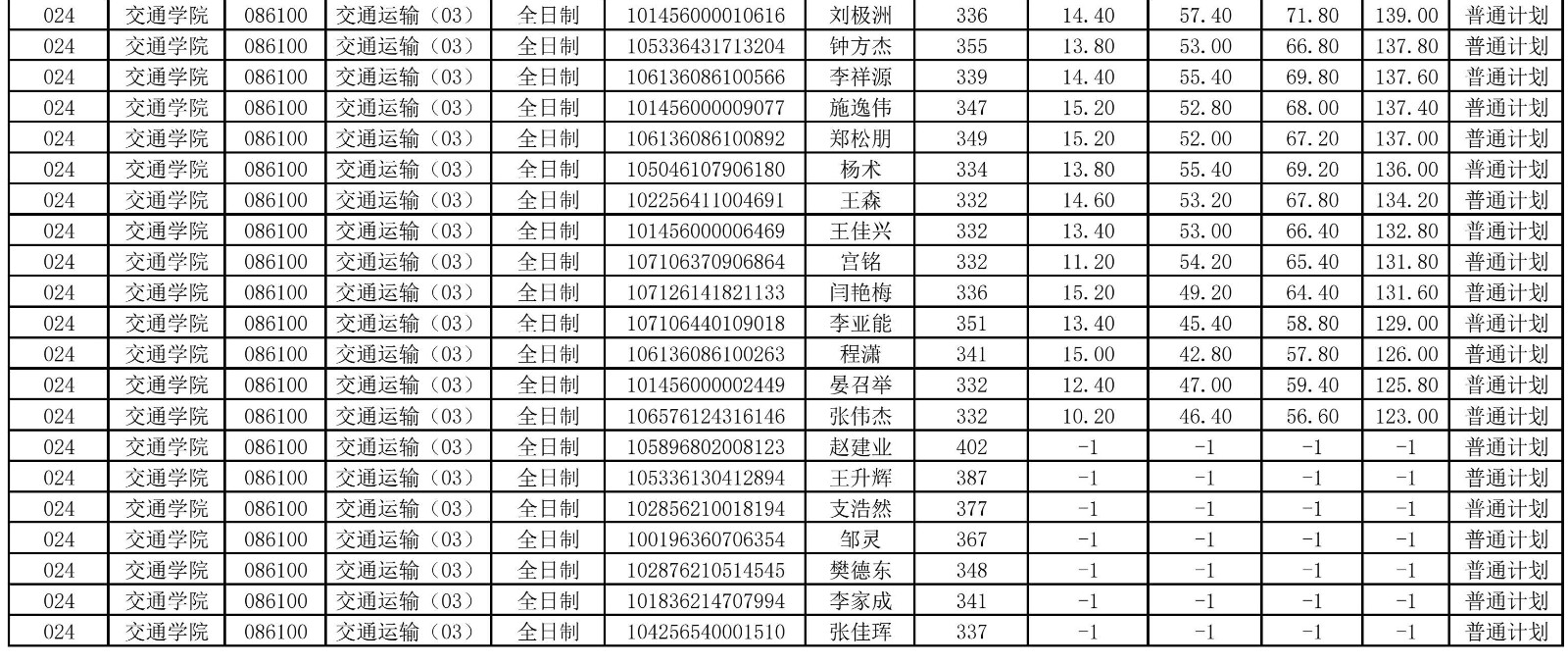 交通學(xué)院2026年調(diào)劑成績(jī)公示一