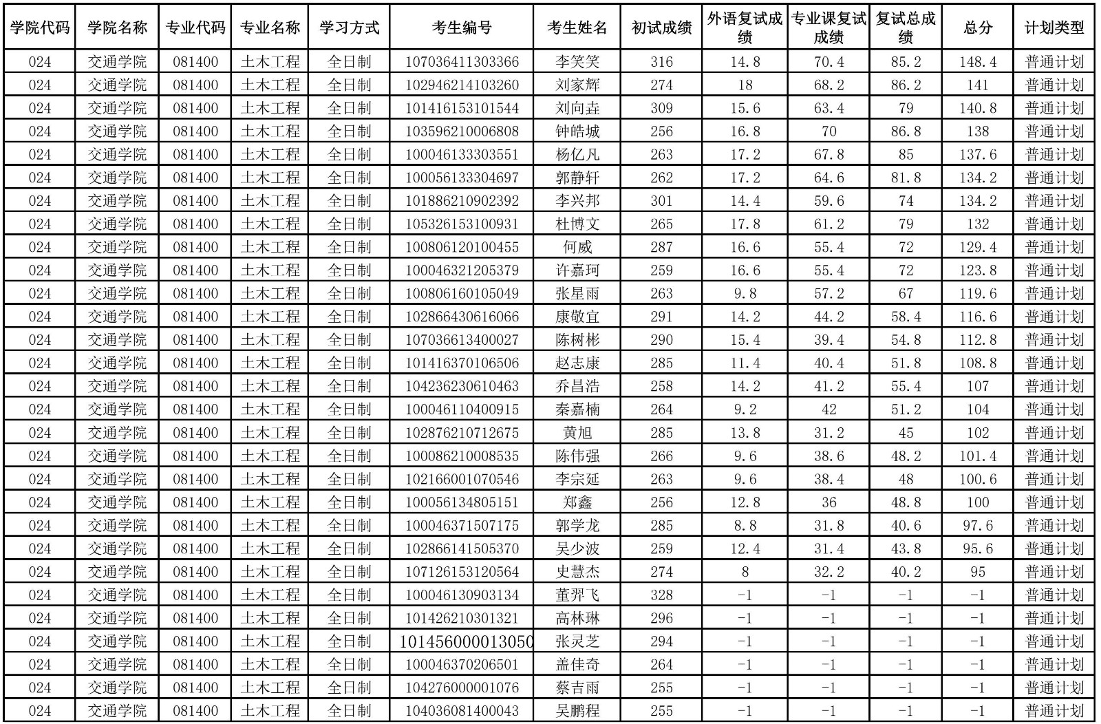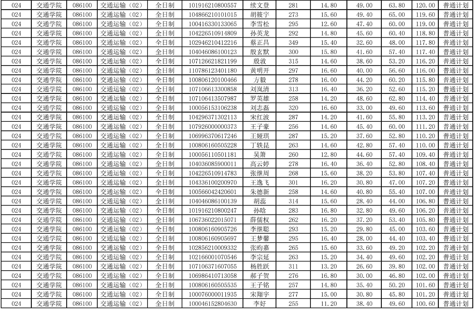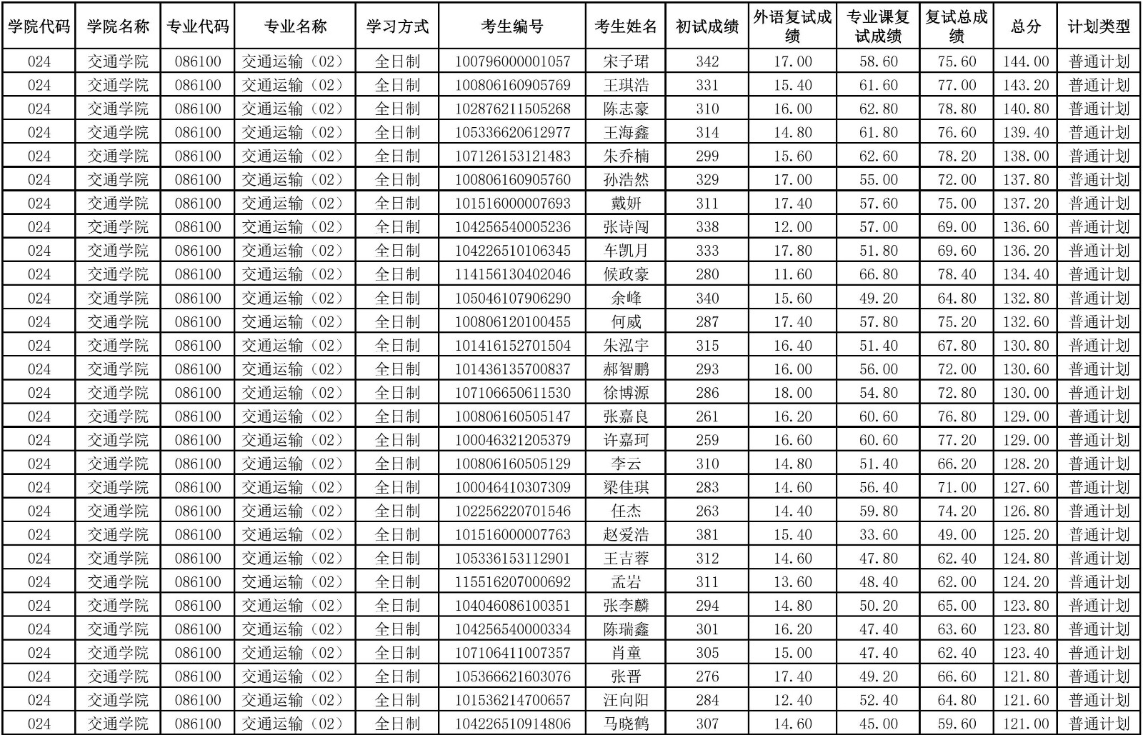 交通學(xué)院2026年調(diào)劑成績(jī)公示一
