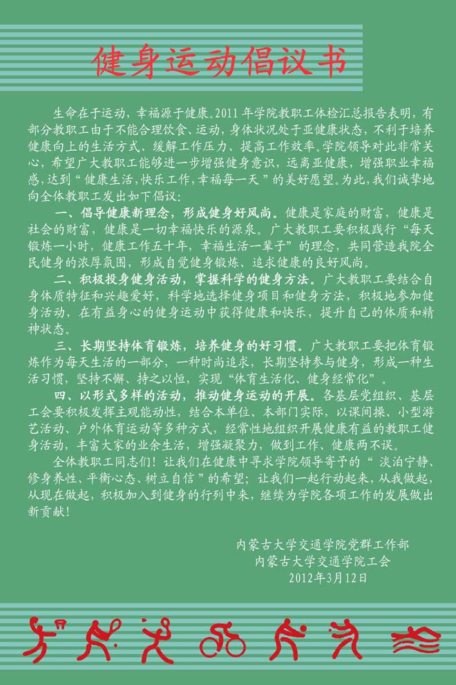 關(guān)于開展教職工健身運(yùn)動(dòng)的倡議書