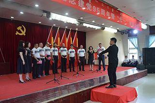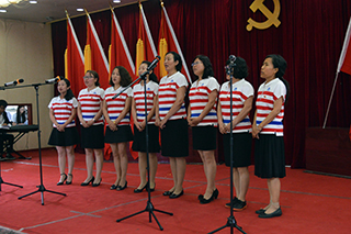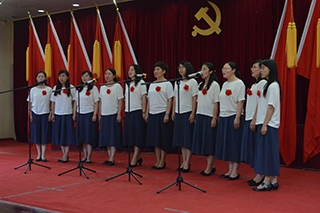 紀(jì)念暨表彰大會(huì)后,孫智憑書(shū)記和化學(xué)化工學(xué)院退休教師趙薇即興合唱了一首《長(zhǎng)江之歌》獻(xiàn)禮黨的生日。各基層黨組織也向偉大的中國(guó)共產(chǎn)黨奉獻(xiàn)了精心準(zhǔn)備的生日禮物——“愛(ài)國(guó)、愛(ài)黨、愛(ài)人民”小合唱和配樂(lè)詩(shī)朗誦。