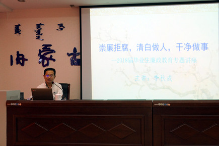 2018年6月20日下午,學(xué)院在交通樓A351會議室舉辦2018屆畢業(yè)生廉政教育專題講座--《崇廉拒腐,清白做人,干凈做事》,學(xué)院2018屆畢業(yè)生代表80余人聽取了講座。