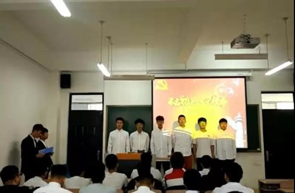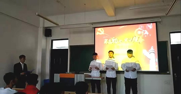 朗誦《不忘初心,牢記使命》、《不忘初心,跟黨走》、《我愛我的祖國》及合唱《團(tuán)結(jié)就是力量》、《強(qiáng)軍戰(zhàn)歌》、《我和我的祖國》,贏得了師生的陣陣掌聲。無不傳導(dǎo)著中國共產(chǎn)黨人那永不褪色的精神和那不畏艱險(xiǎn)、不懼困難、還有那銳意勃發(fā)的氣質(zhì)。團(tuán)日活動(dòng)讓全體同學(xué)倍感振奮,活動(dòng)臨近尾聲大家齊聲高呼:“不忘初心、牢記使命,團(tuán)結(jié)一致、砥礪前行!筑機(jī)1924班,加油!”響亮的口號響徹整個(gè)教室、整個(gè)樓道,激勵(lì)著在場每一個(gè)人。
