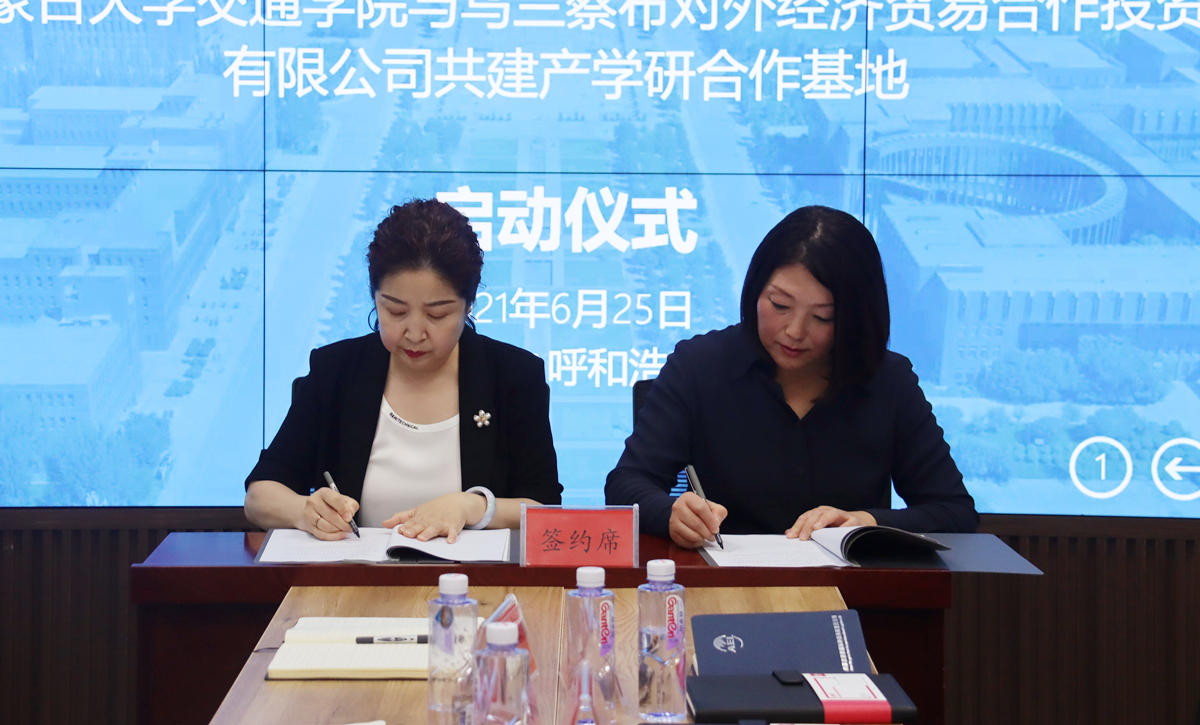 學(xué)院白托婭院長(zhǎng)與烏蘭察布對(duì)外經(jīng)濟(jì)貿(mào)易合作投資發(fā)展有限公司趙奇志董事長(zhǎng)簽訂了合作協(xié)議,共同為基地揭牌。