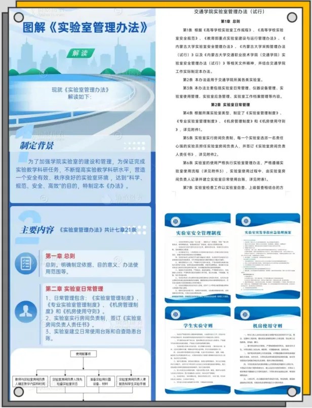 學院實驗室管理中心始終堅持“安全第一、預防為主”的原則,深入貫徹“以人為本、安全第一、預防為主、綜合治理”的方針,建立健全的交通學院實驗室三級管理制度,制定明確的實驗室安全管理制度,為實驗室統(tǒng)一配備《實驗室使用記錄》、《實驗室儀器使用記錄》和《實驗室安全隱患自查臺賬》。推行實驗室安全雙準入制度。對交通運輸教學科研實驗平臺、機械類教學科研實驗平臺和土木類教學科研三大實驗平臺41個科研、教學實驗室進行實驗室安全分級、分類管理。設立安全員巡視制度,及時發(fā)現(xiàn)和消除潛在的安全隱患,確保實驗室始終處于安全可控狀態(tài)。